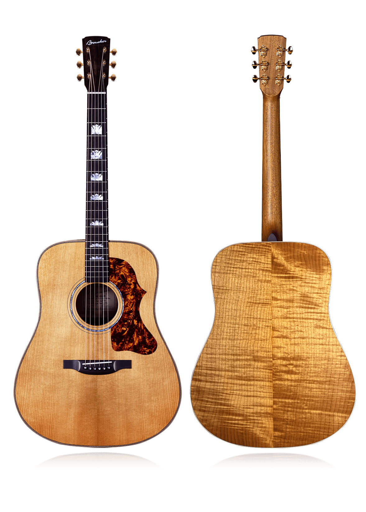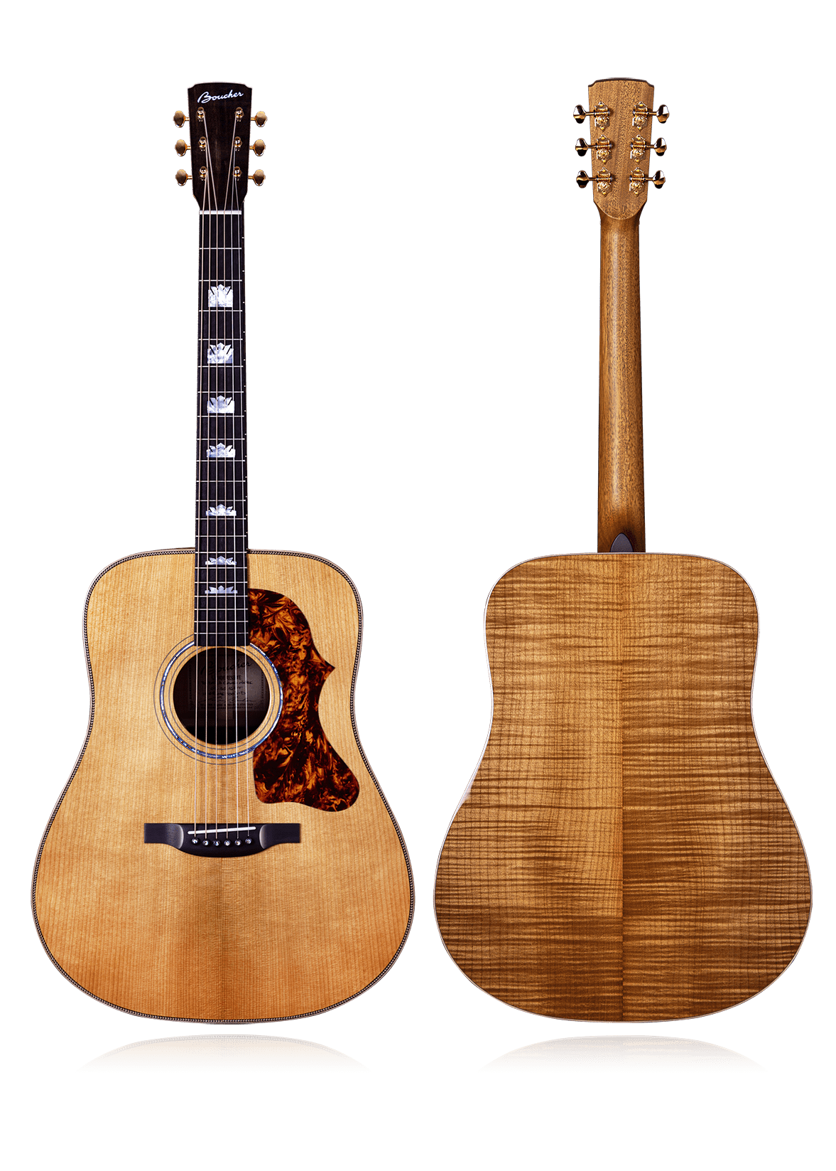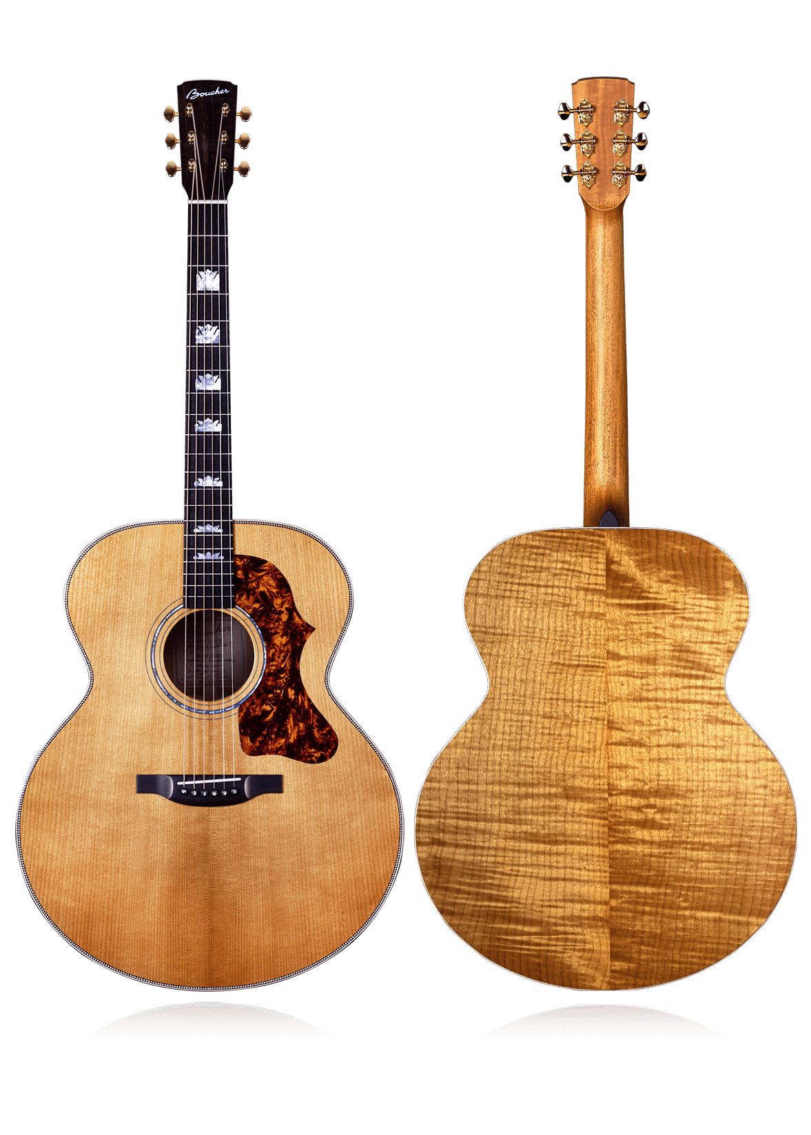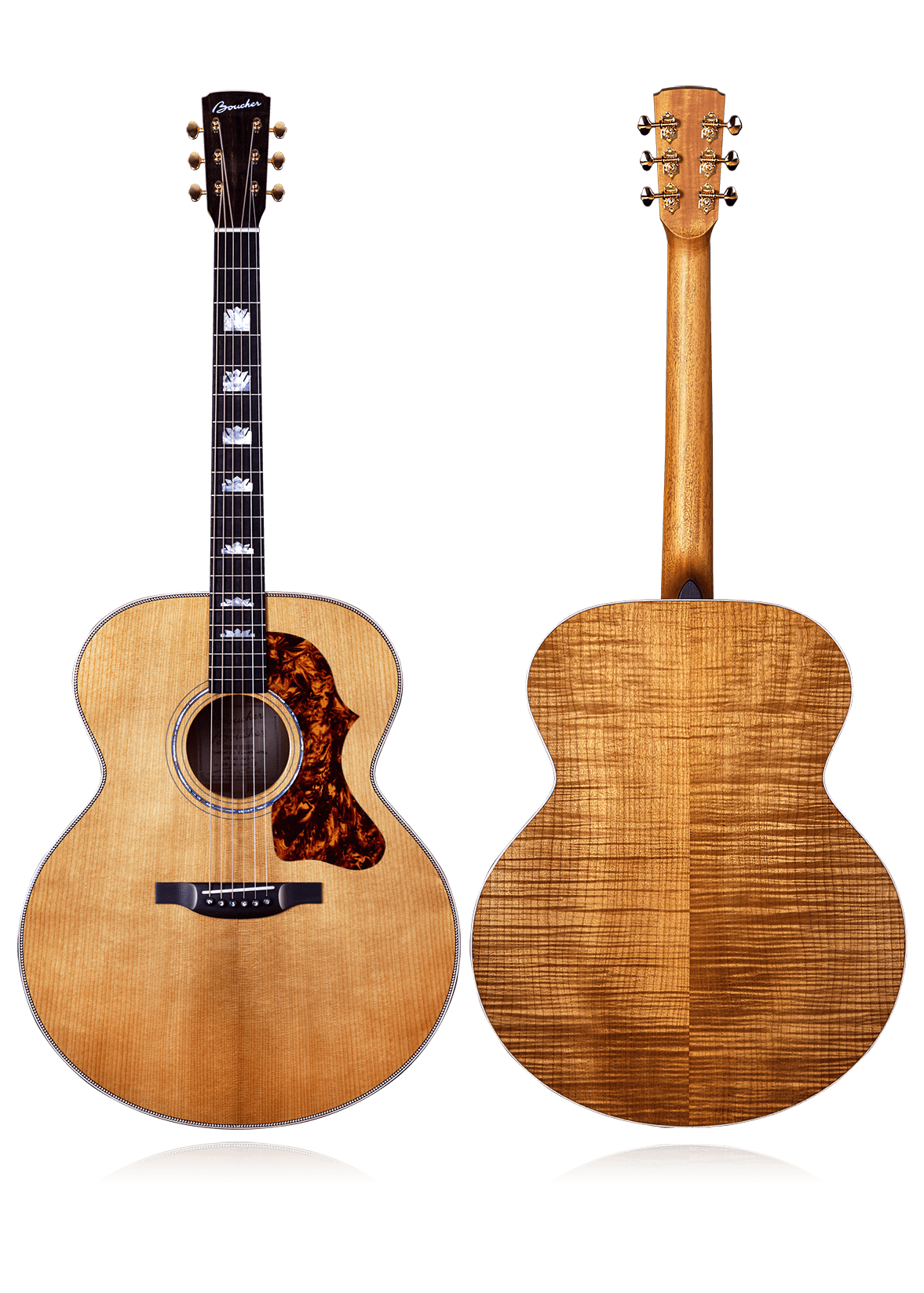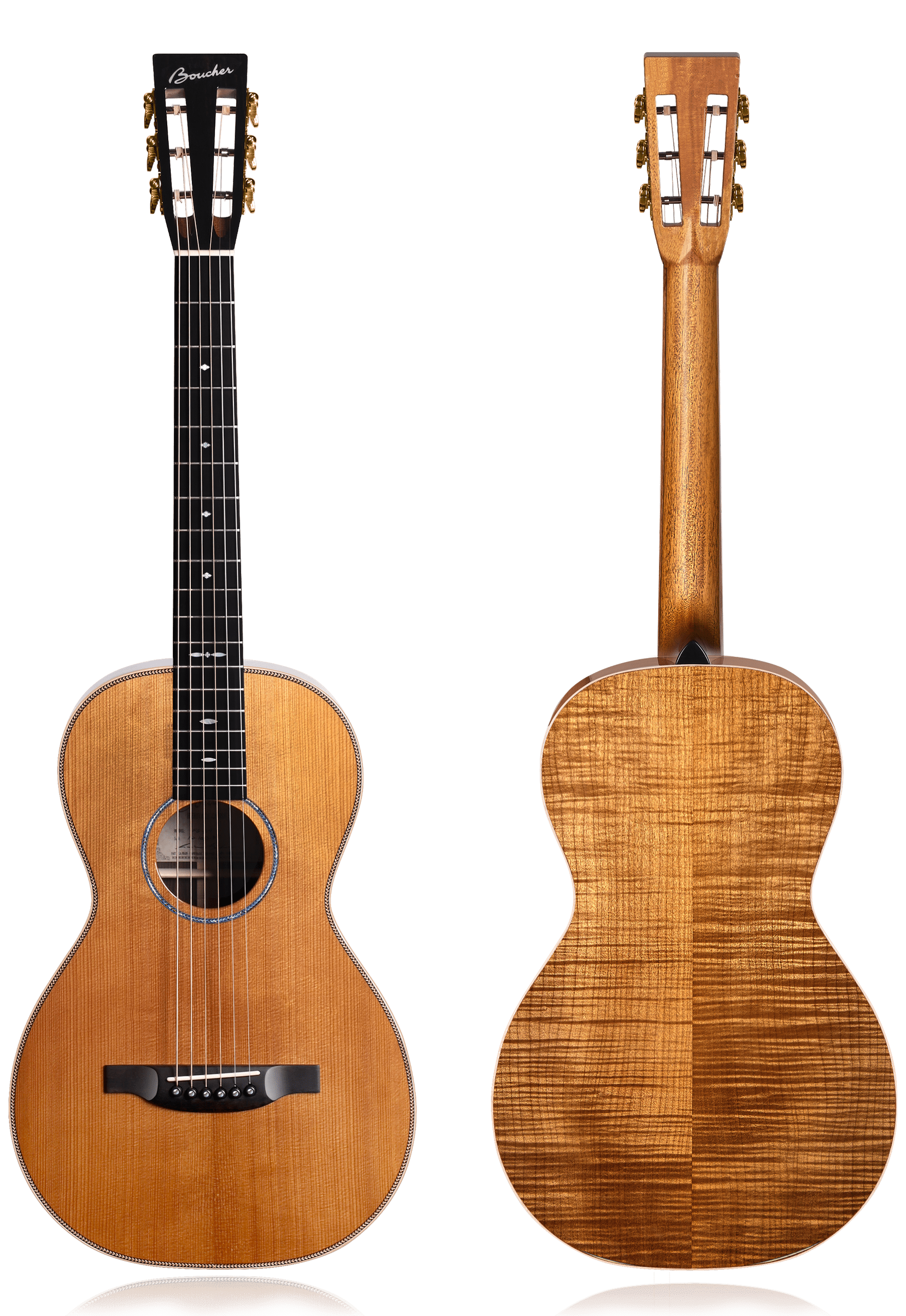 The world of guitar making proclaims that at least 70% of the sound properties of a high-end acoustic guitar have a connection with its soundboard and bracing. Boucher Guitars supports this view. The quality of the materials used in the making of a soundboard is, therefore, crucial. The Adirondack red spruce is, to everyone, the Holy Grail of wood species to consider when designing soundboards. However, its great rarity limits its use among manufacturers. Imagine the impact of a “Master Grade” Adirondack red spruce soundboard on the sonority of your guitar! And that is not all! All Boucher guitars with the MASTER GRADE PACK™ include a rosette ornamented with abalone inlay and Koa body bindings. This is to support the quality assurance and extreme rarity of a Master Grade Adirondack red spruce soundboard. We thought of you and of everything!
